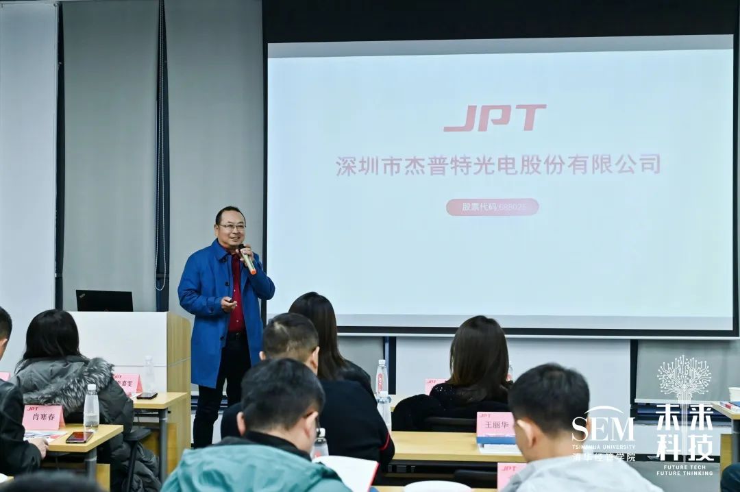 12月21日,清华大学未来科技五期班师生到访深圳市杰普特光电股份有限公司参观交流。杰普特董事长黄治家、杰普特成长学院胡珊珊热情接待了各位师生。