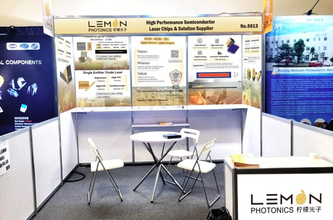 据悉,柠檬光子此次为客户展示的成套激光芯片及解决方案涵盖了VCSEL、HCSEL、EEL三大激光芯片、智能传感类点线面激光模组、医美类激光模组、以及工业领域的激光加热引擎等,吸引众多客户咨询。