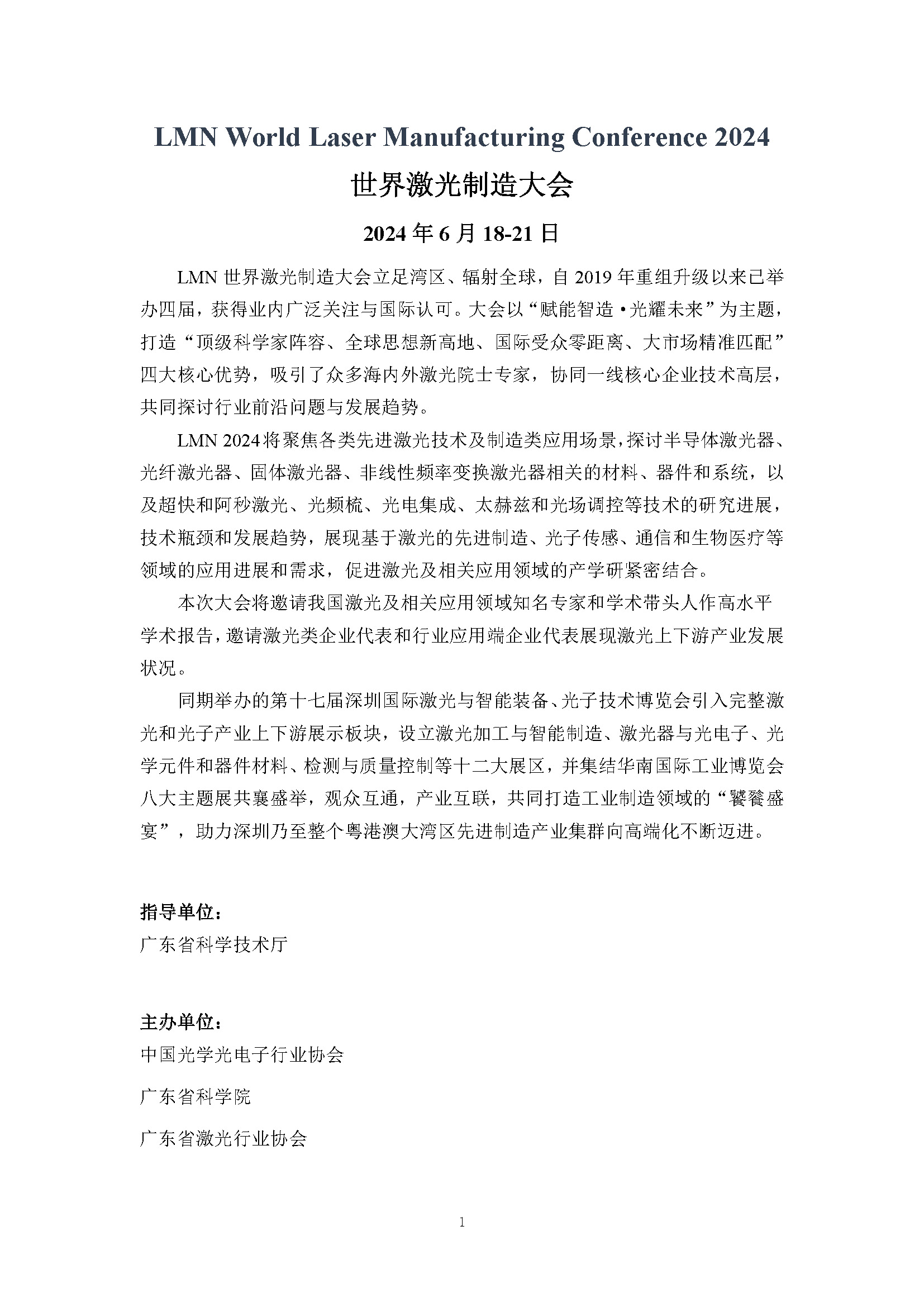 LMN 2024 世界激光制造大会第一轮通知