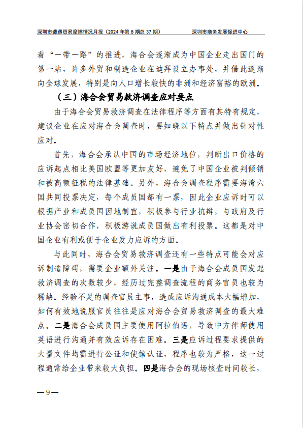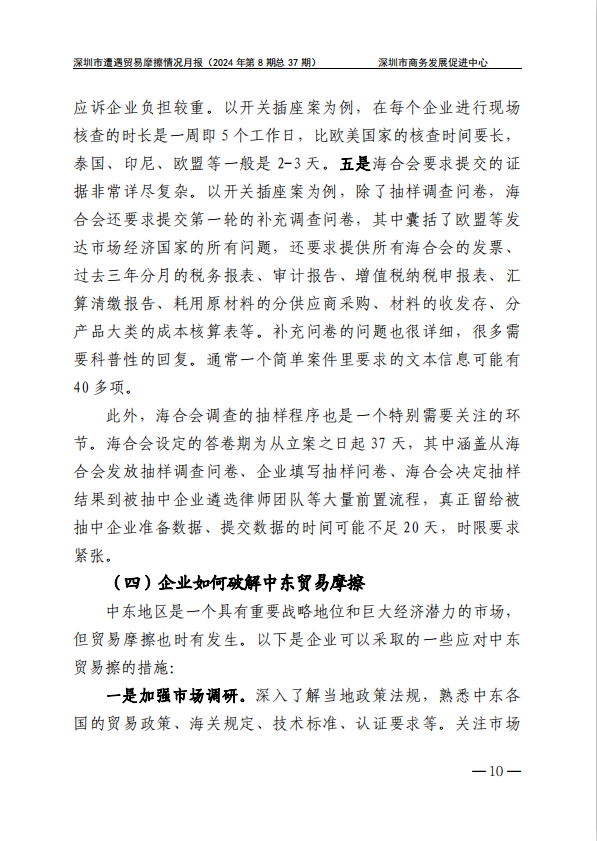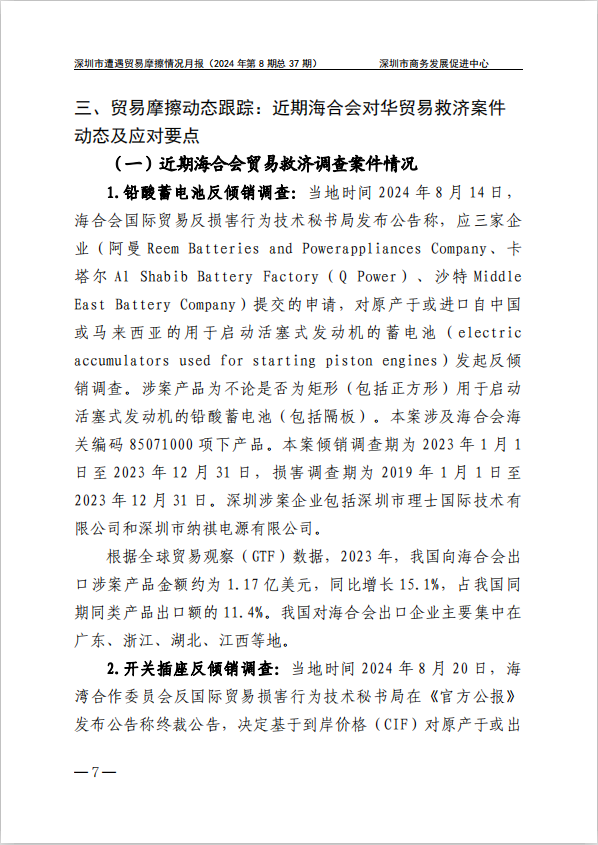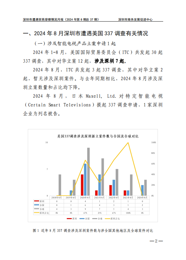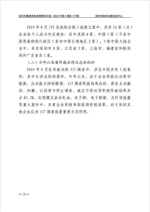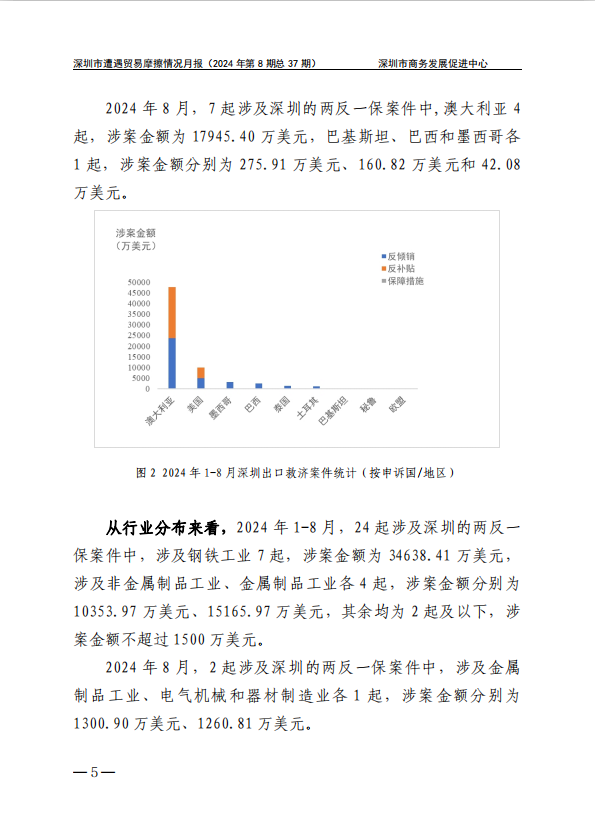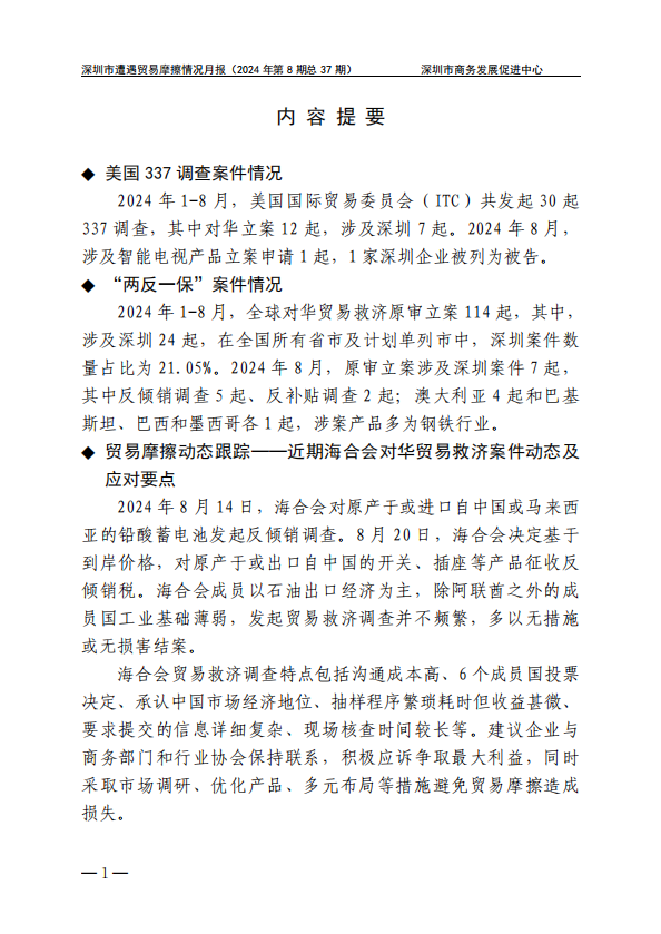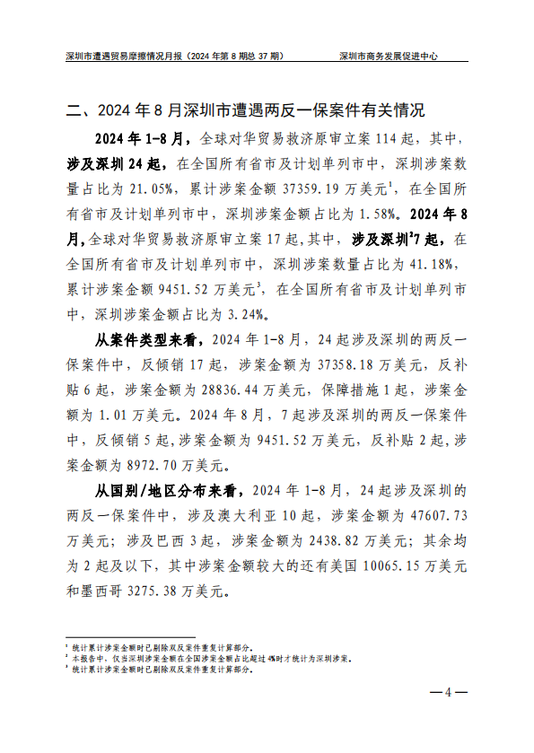 深圳市商务发展促进中心:2024 年 8 月深圳市遭遇贸易摩擦情况月报