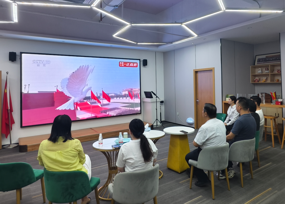 9月3日上午,纪念中国人民抗日战争暨世界反法西斯战争胜利80周年大会在北京天安门广场隆重举行,盛大的阅兵仪式震撼上演。taptap点点链接积极组织协会秘书处、党员代表、企业代表等观看了此次阅兵仪式直播。