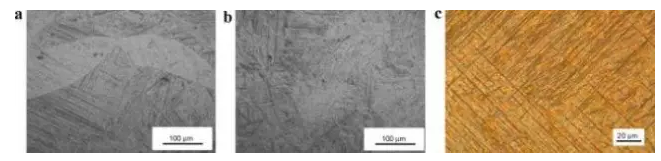 图3.2 FZ的组织:(a)0.8kW,17mm / s,(b)1 kW,50mm / s, (c)是b中的马氏体结构